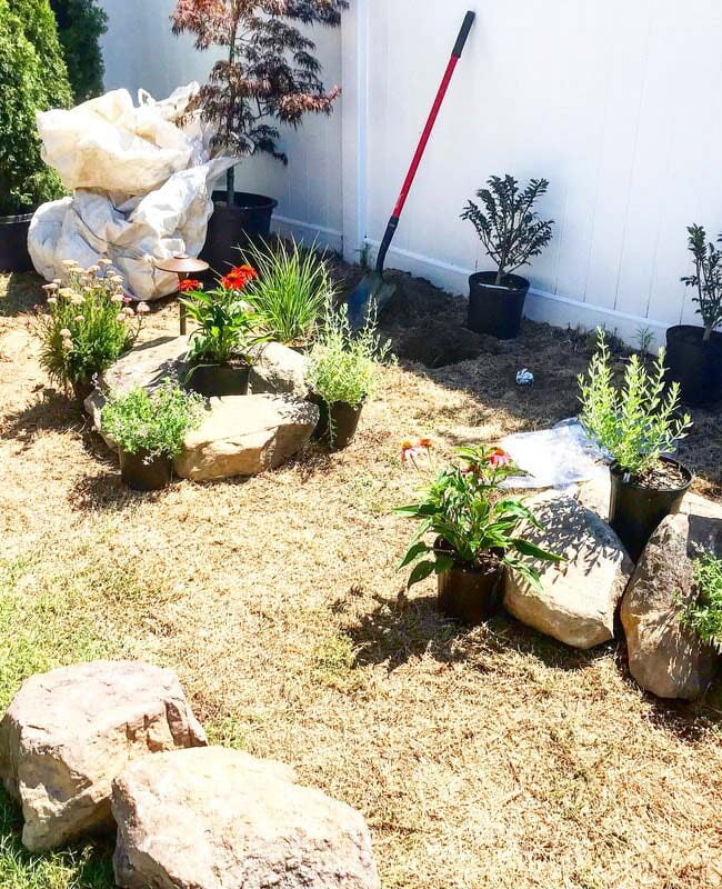 ​​Now that we had flowing water, it was time to focus on the second goal of this space: the landscaping. We needed to attract native insects, bees, and butterflies, which meant using a blend of true native plants, native cultivars, and a few to just look good.