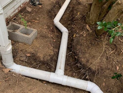 Many patios are located near a downspout. If we need to reroute a downspout under or around a patio, it is no problem for us to do. We typically use 4″ PVC with an adapter to a yard pop-up or drain cap. This keeps the water off of your patio and protects your investment. Typically, this runs between $750-$1,500.