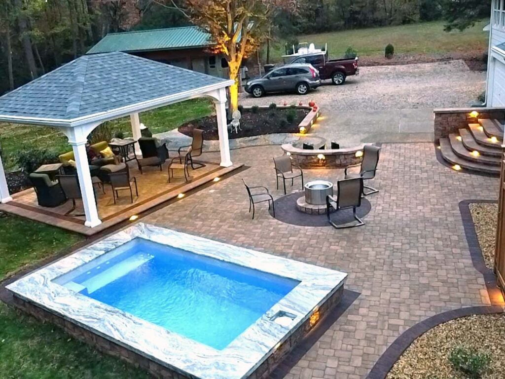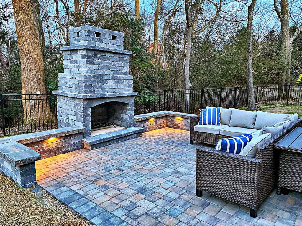 This is the fun part! Lighting up a space truly makes it pop. Low-voltage lighting brings a certain ambiance to the space. Nothing kills the mood like sitting around a fire pit with an oppressive flood light in your eyes. There are several ways to add lighting including cap lights along the edges, up-lights along the home, path lights along the edge, or even lights incorporated into the actual pavers. Our lighting systems are generally WiFi-enabled with their own transformer and rarely draw more power than charging a cellphone. Expect to invest anywhere between $900 to $4,000 for lighting.