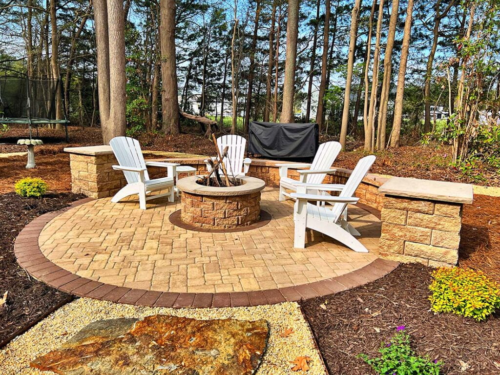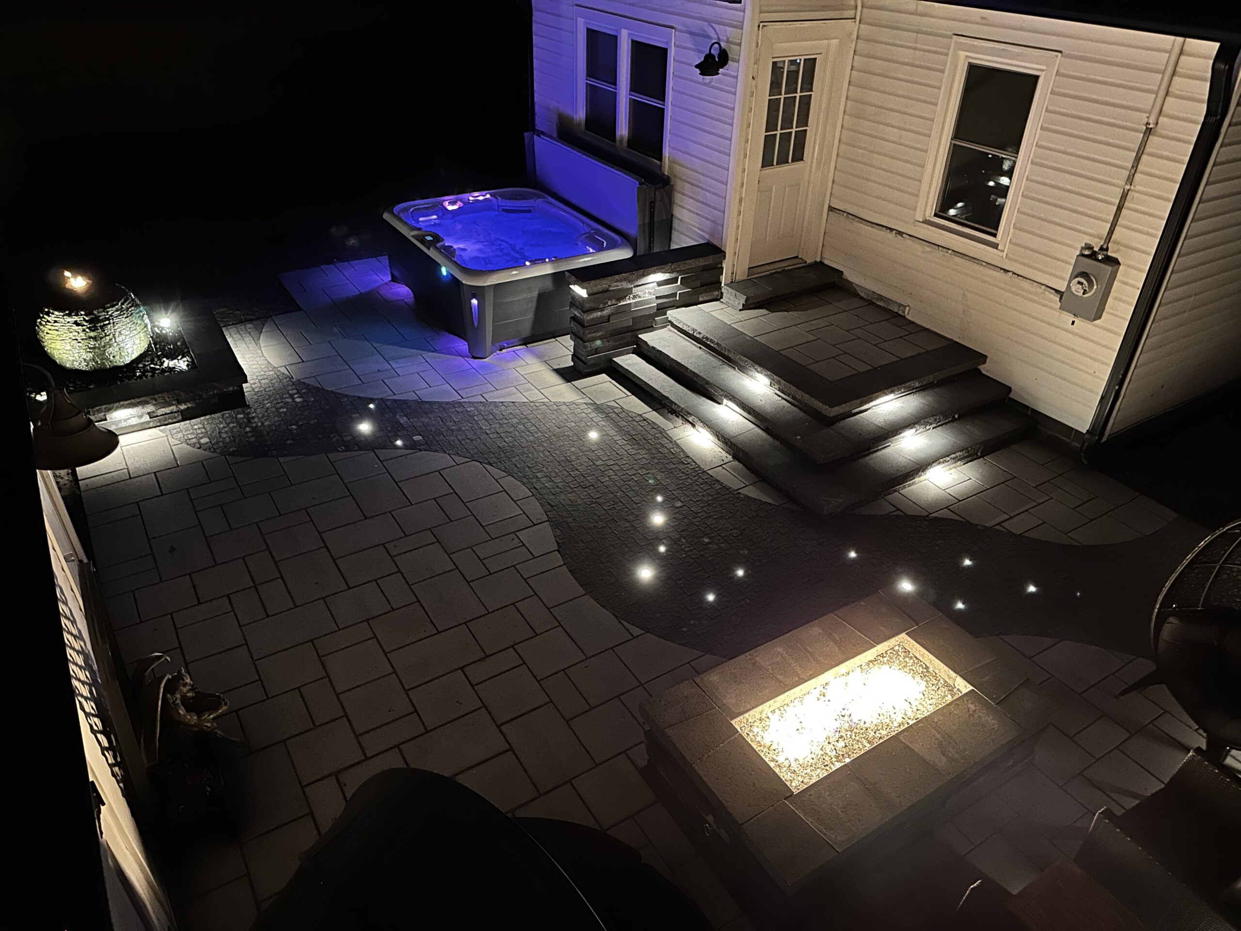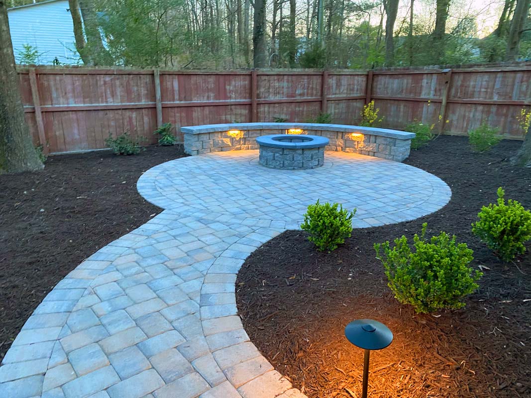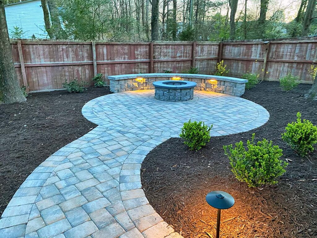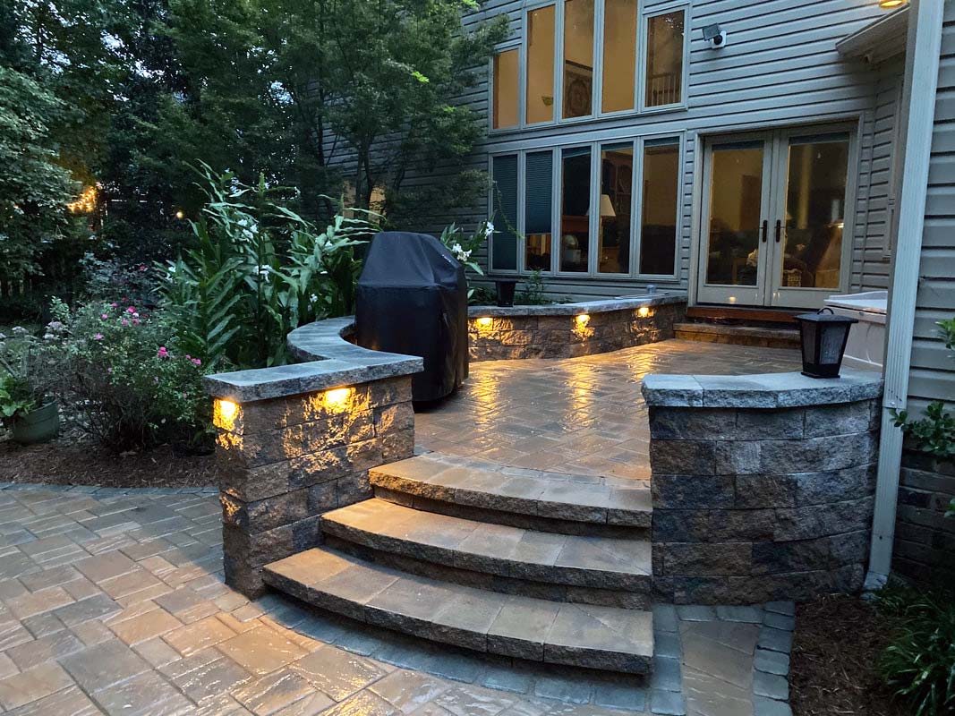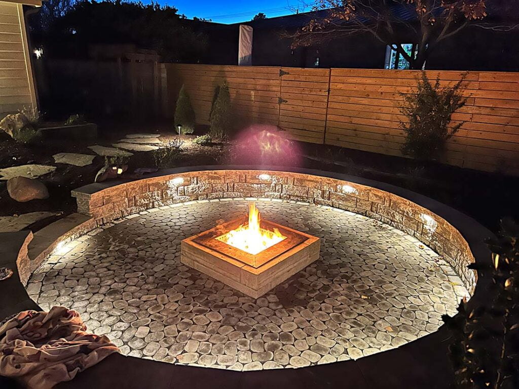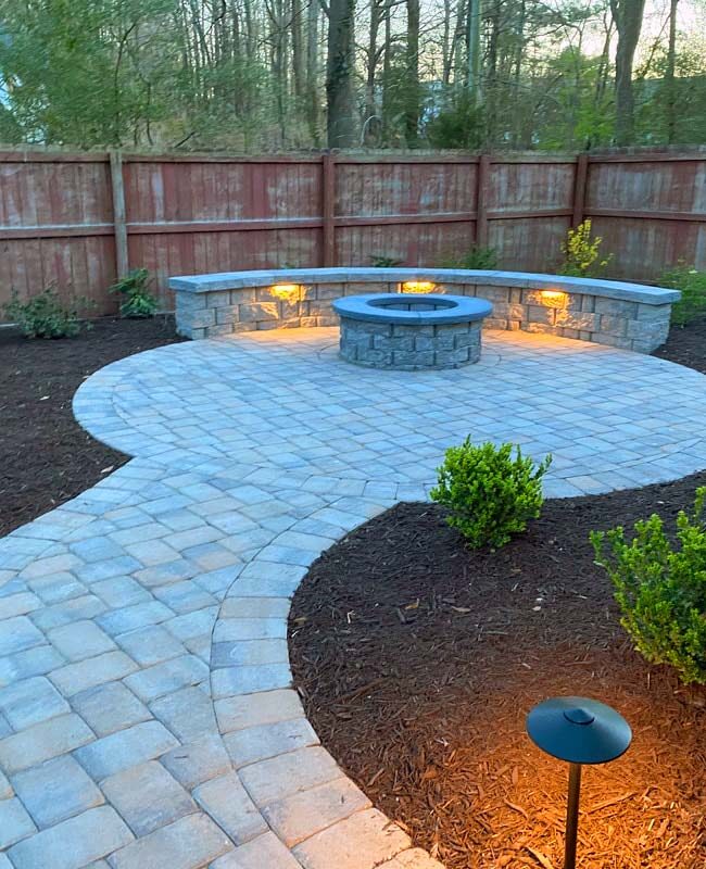 This is the fun part! Lighting up a space truly makes it pop. Low-voltage lighting brings a certain ambiance to the space. Nothing kills the mood like sitting around a fire pit with an oppressive flood light in your eyes. There are several ways to add lighting including cap lights along the edges, up-lights along the home, path lights along the edge, or even lights incorporated into the actual pavers. Our lighting systems are generally WiFi-enabled with their own transformer and rarely draw more power than charging a cellphone. Expect to invest anywhere between $900 to $4,000 for lighting.