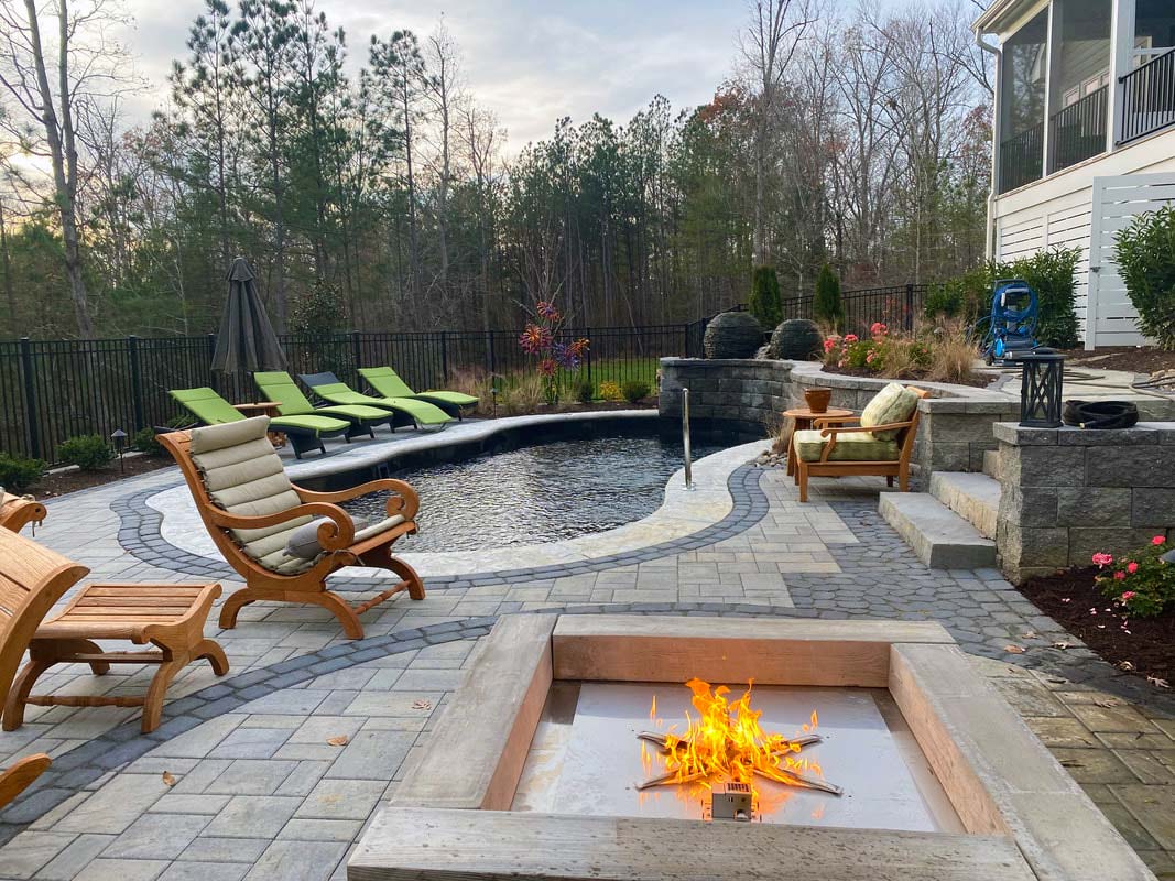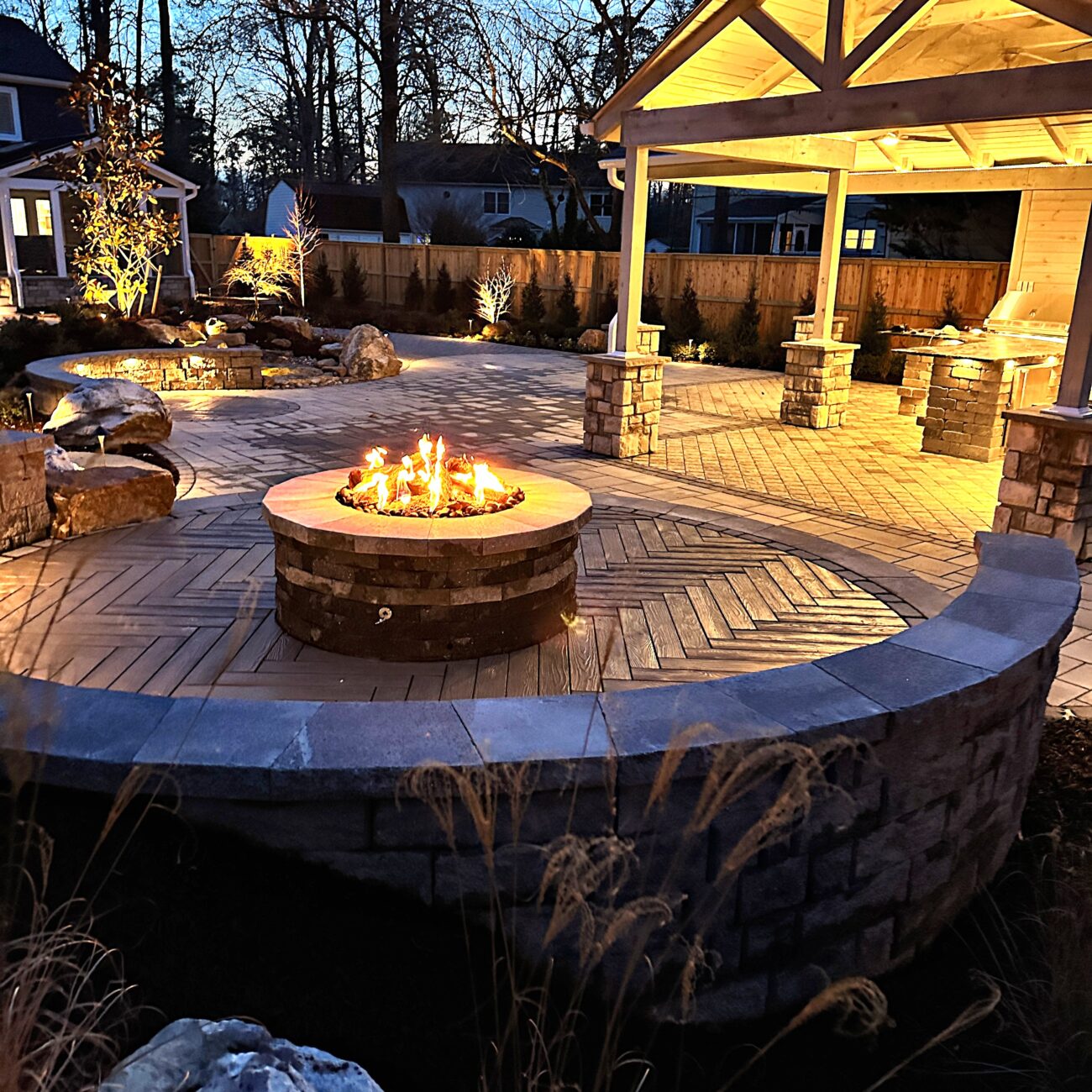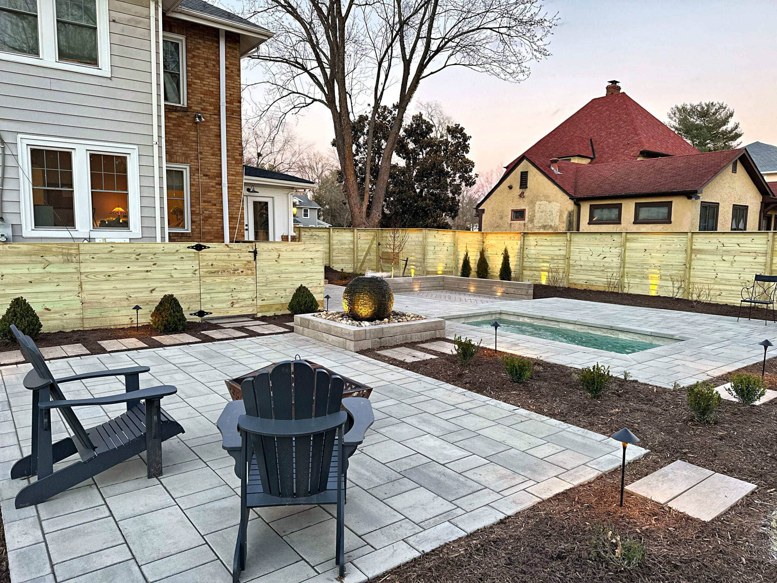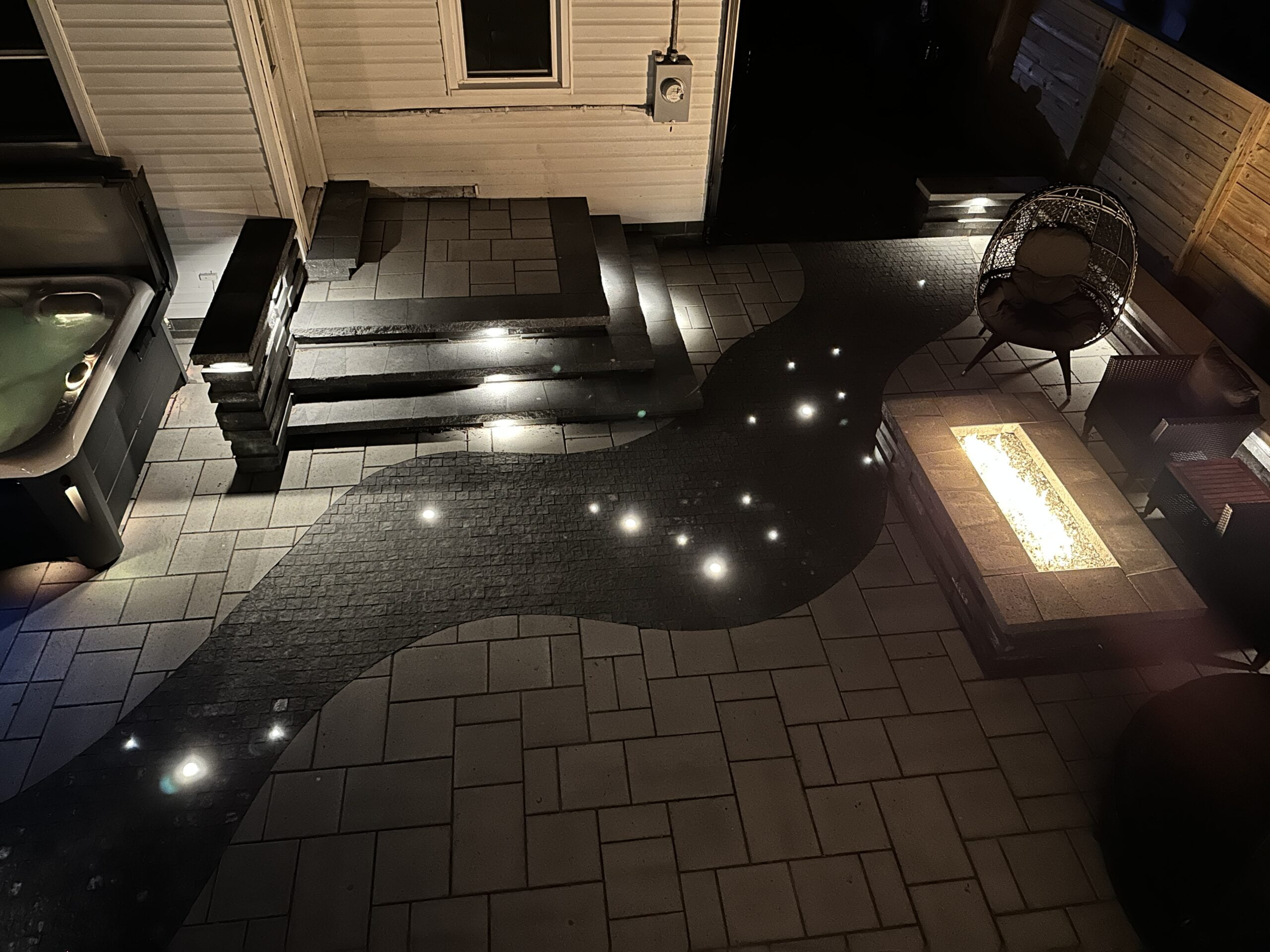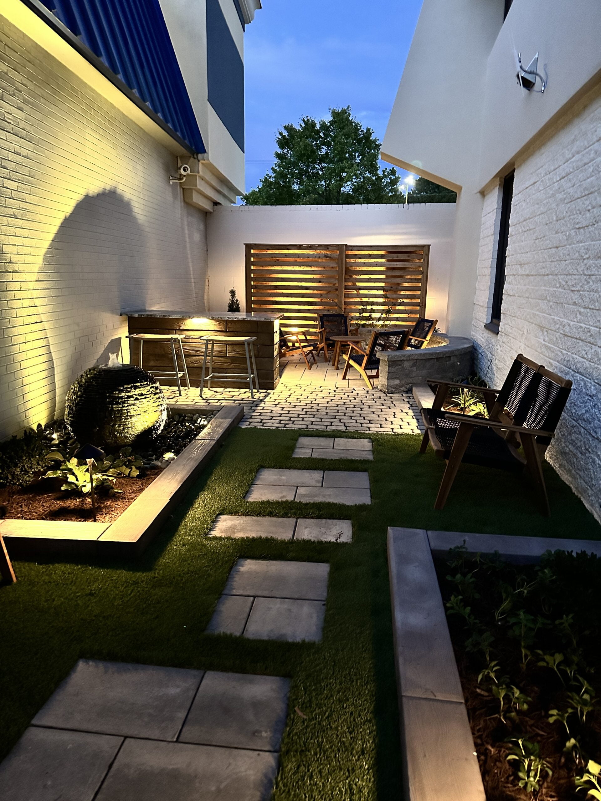This is the fun part! Lighting up a space truly makes it pop. Low-voltage lighting brings a certain ambiance to the space. Nothing kills the mood like sitting around a fire pit with an oppressive flood light in your eyes. There are several ways to add lighting including cap lights along the edges, up-lights along the home, path lights along the edge, or even lights incorporated into the actual pavers. Our lighting systems are generally WiFi-enabled with their own transformer and rarely draw more power than charging a cellphone. Expect to invest anywhere between $900 to $4,000 for lighting.