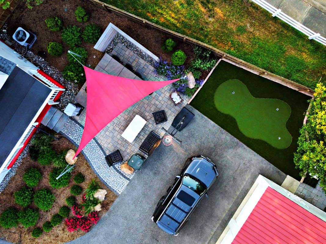 Do you have a high traffic area you can’t grow grass? Are you looking for a low-maintenance solution for the yard? Artificial turf could be the answer for handling poor drainage while still creating a space for the dogs and kids to play. We frequently create spaces to practice your short game as well. Putt-putt with a few holes can easily fit inside of 10′ x 15′ area.