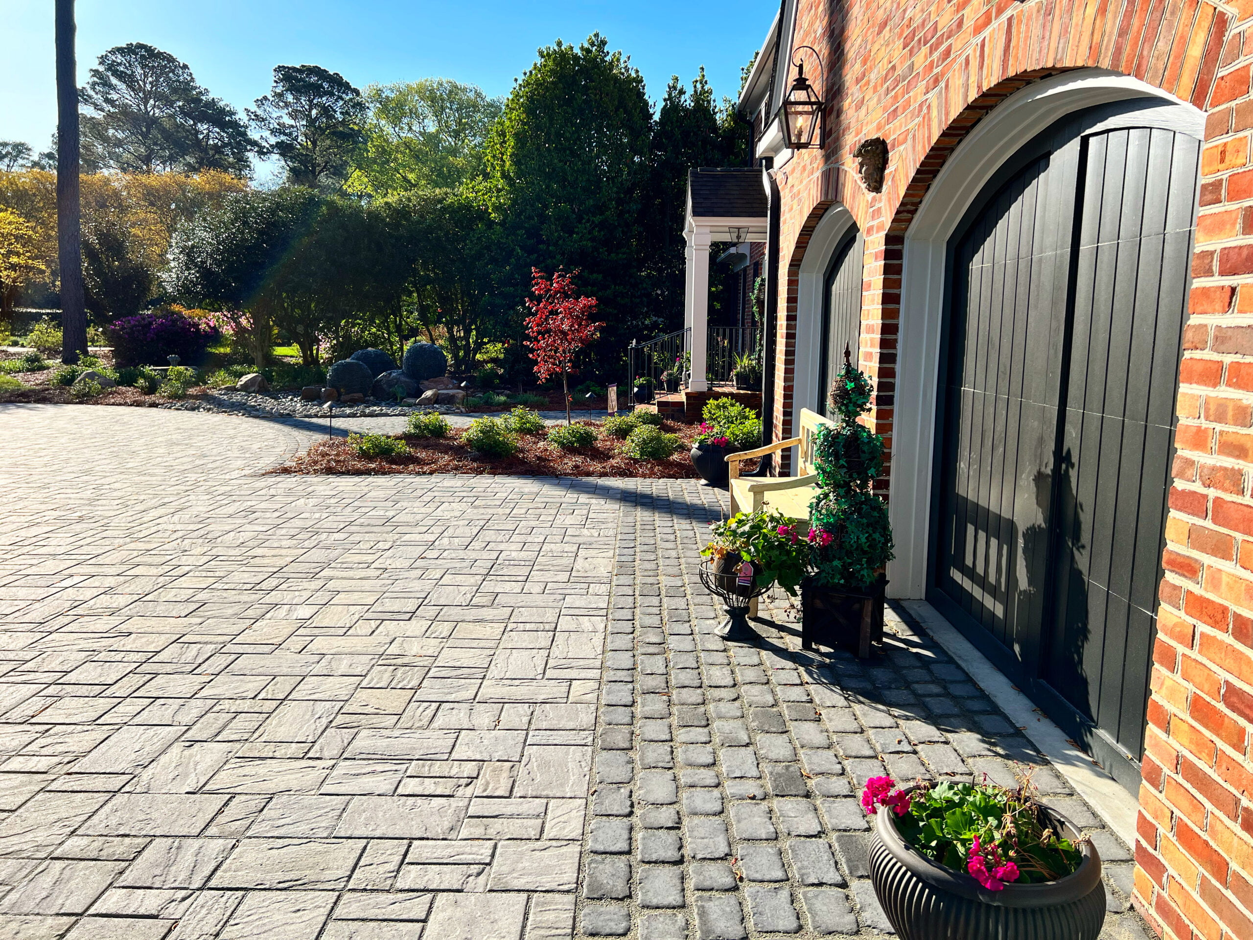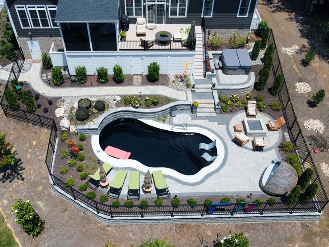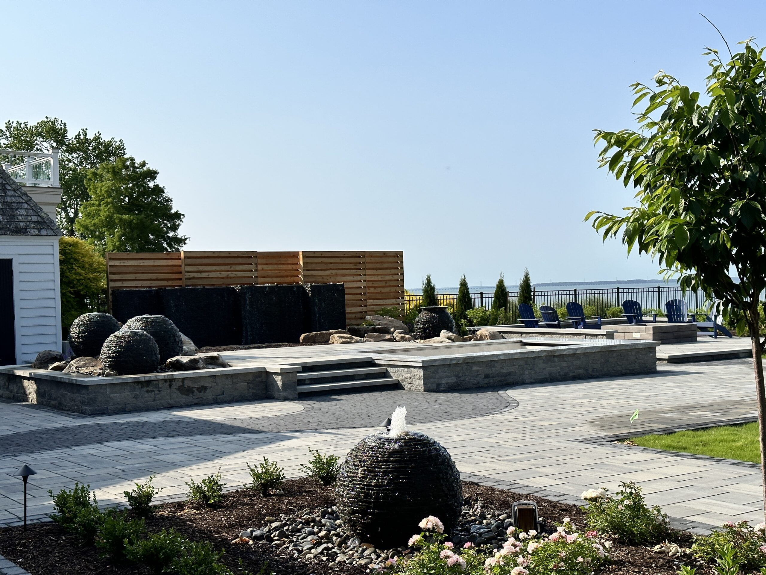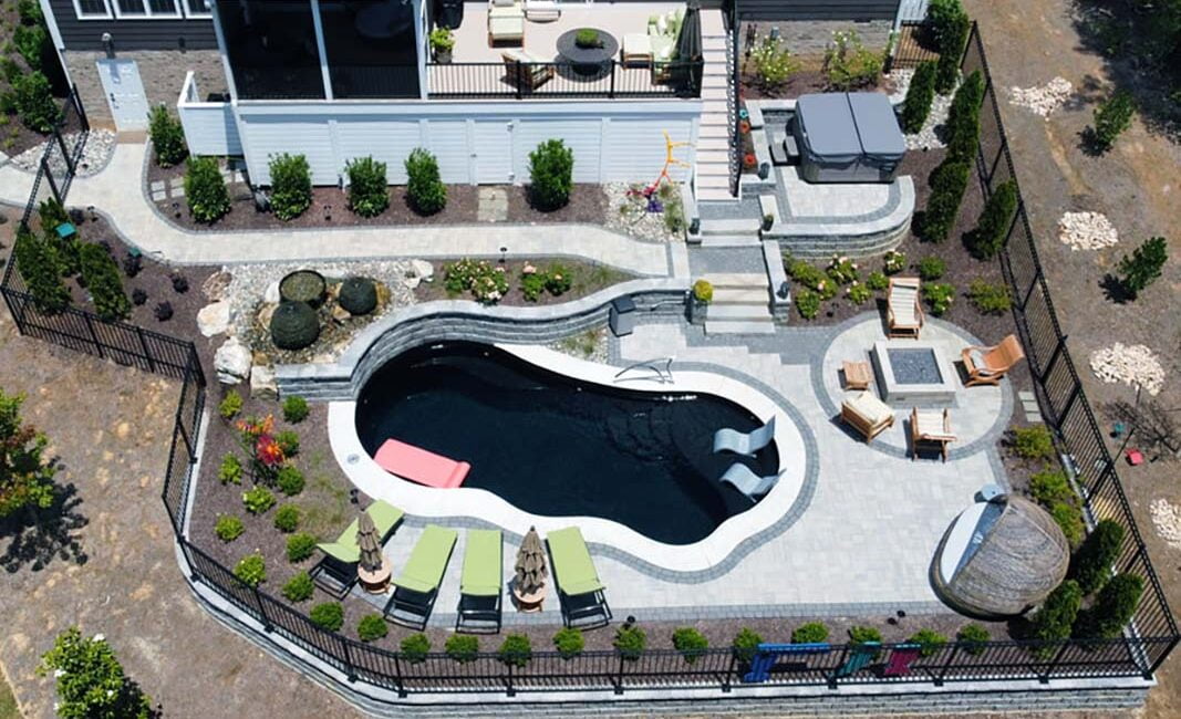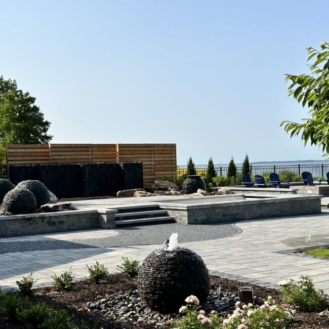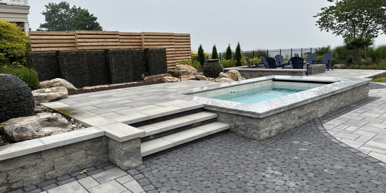 This option is a blend of art and function. We aren’t simply using ordinary materials to create an extraordinary space. The Estate Patio package uses the high-end Techo Bloc pavers and slabs in thoughtful designs. We use resin sand in the joints instead of polymeric sand. The fit and finish of our Estate Patios is distinct. We build unique inlays and use pavers to create “rugs” and contrasting areas throughout the space. Elevation change, drainage, and lighting also play a role in creating these Estate Patios.