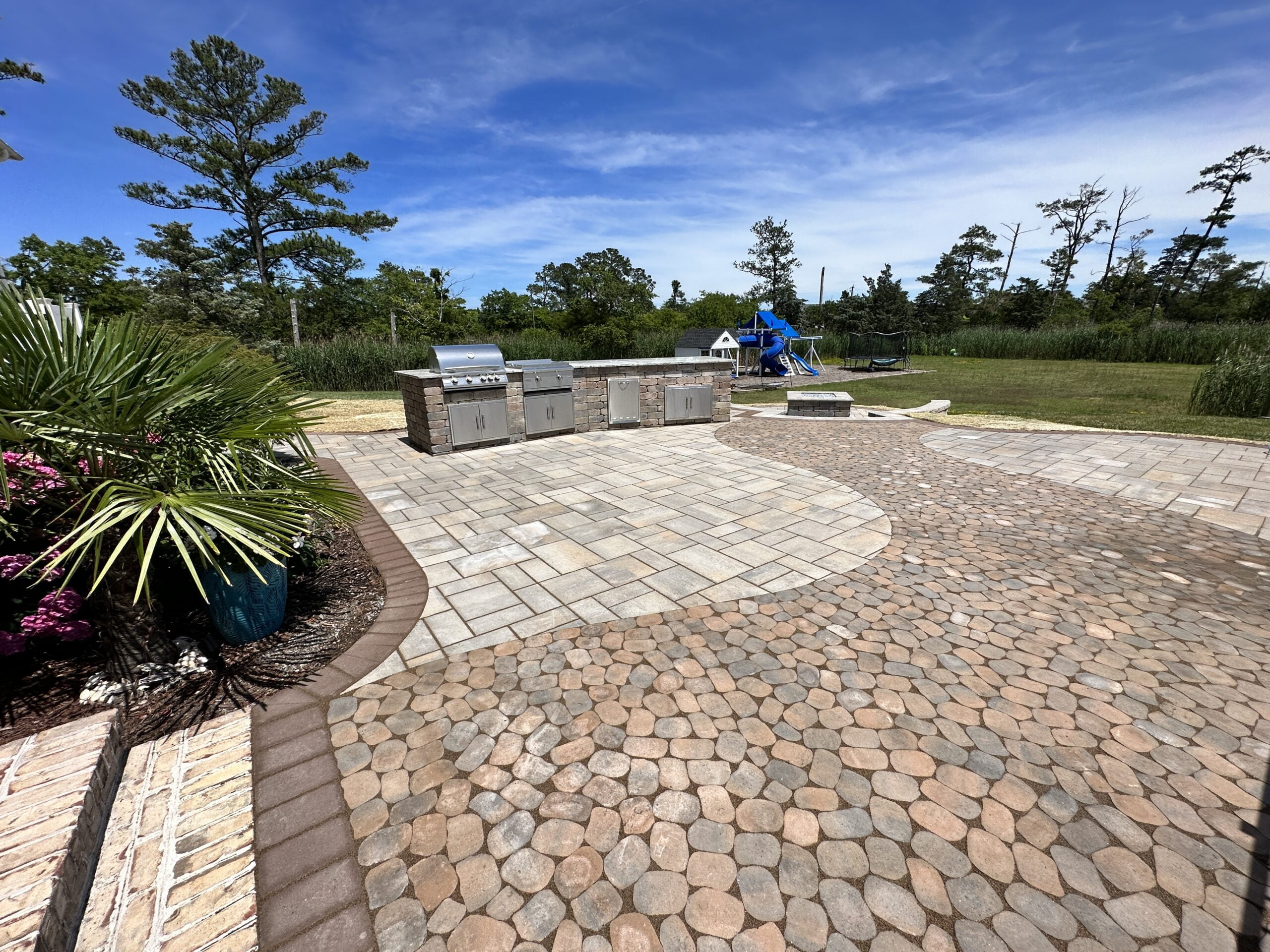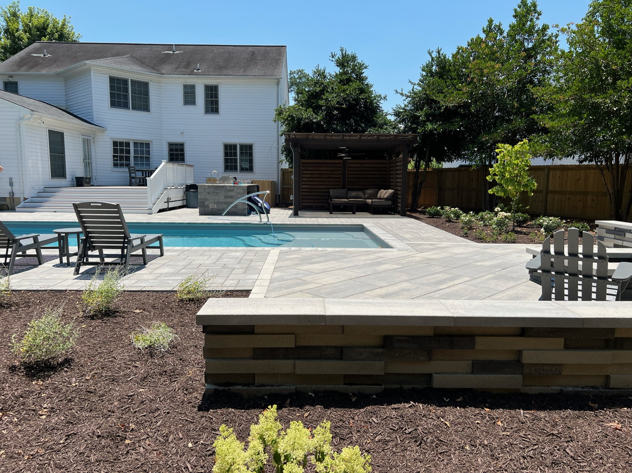 Transform your backyard into a haven for hanging out with your best friends on this larger paver patio. With enough space for an outdoor kitchen and bar, it’s the perfect spot to grill up delicious food and enjoy refreshing drinks. Create lasting memories in your own outdoor paradise.
