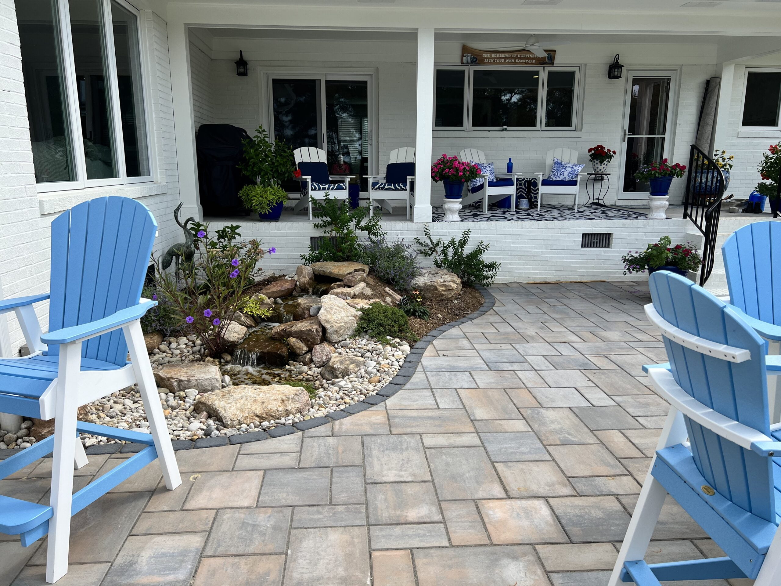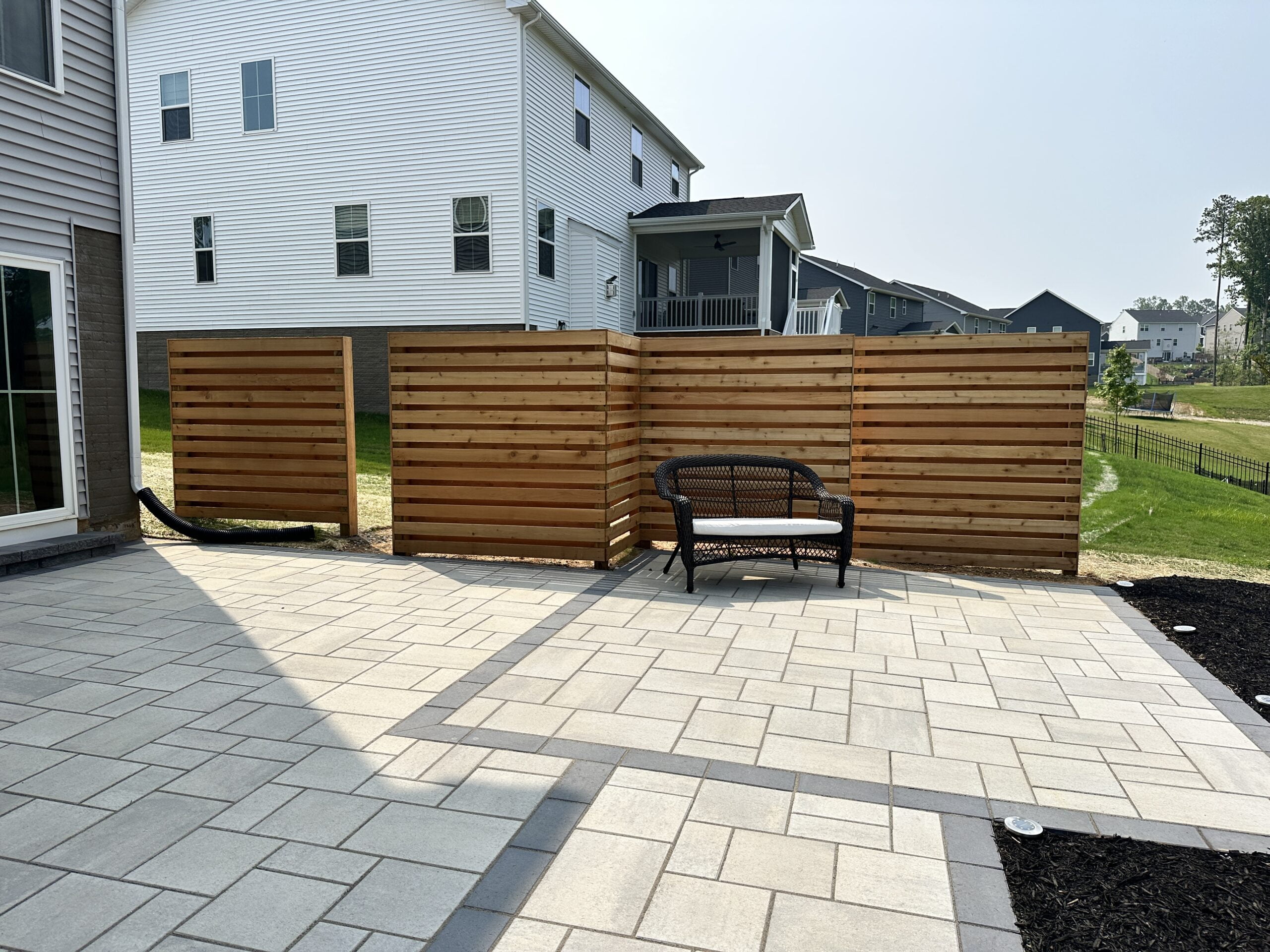 Many patios are located near a downspout. If we need to reroute a downspout under or around a patio, it is no problem for us to do. We typically use 4″ PVC with an adapter to a yard pop-up or drain cap. This keeps the water off of your patio and protects your investment. Typically, this runs between $750-$1,500.