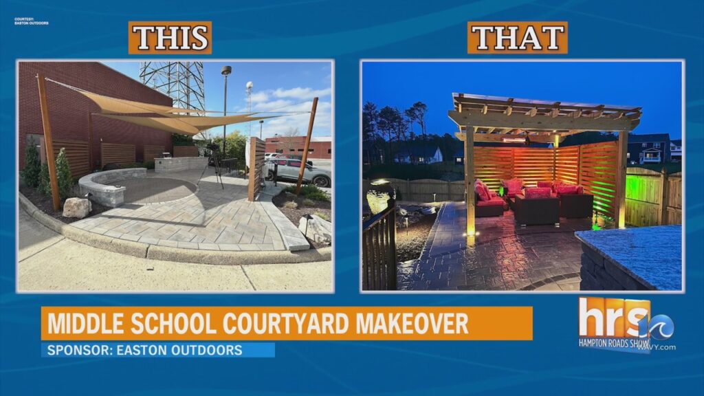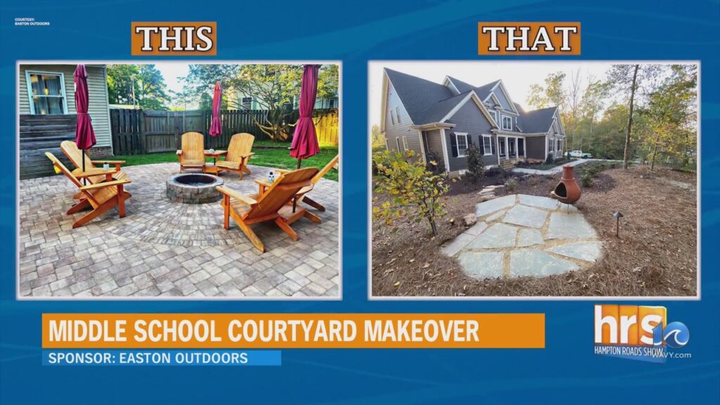 We are excited to share our collaboration with the Hampton Roads Show to transform Deep Creek Middle School’s courtyard. Deep Creek Middle School here in Chesapeake, Virginia, was built in 1975, so it’s an older school, but it’s beautiful in many ways. However, they have two great courtyards that need a bit of help. Dory Suttmiller, a history teacher at Deep Creek Middle School, reached out to the Hampton Roads Show to ask for help with the courtyards. Her classroom overlooks the courtyard, and her students often request to go out. The teachers try to take them out when they can, but once they get outside, it’s either too hot or there’s nothing for them to do, so they end up going back indoors.