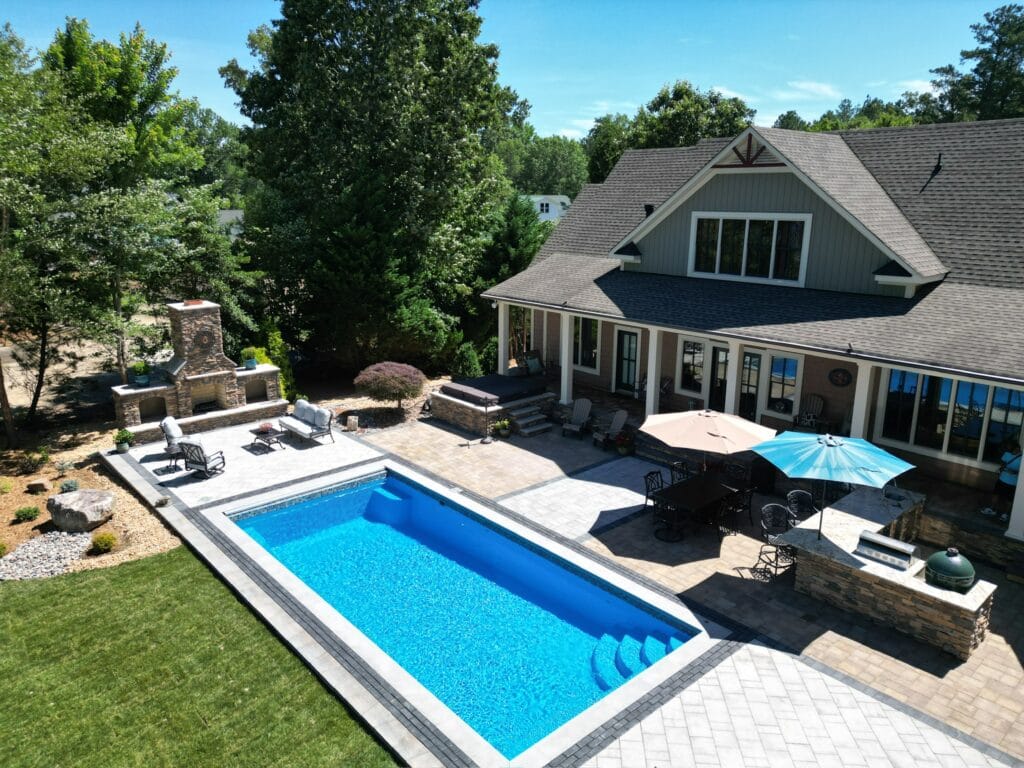 The patio and pool area are built using 730 square feet of pavers, carefully divided by function and flow.