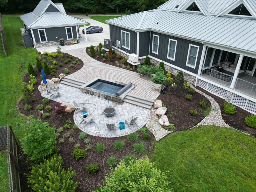 From there, we leaned into contrast rather than forcing a perfect match. Roughly 1,000 square feet of new pavers were installed to complement the existing patio: