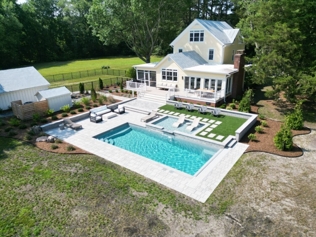 Most new construction homes come with a blank backyard—and while that can sound like a good thing, it often means zero character, no sense of place, and nothing that feels inviting. This homeowner knew right away that wasn’t something they wanted to live with. They weren’t just looking for a pool; they wanted a backyard that felt intentional, layered, and full of life.