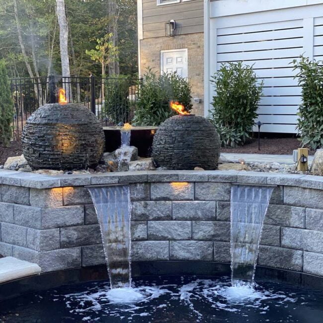 Deck jets, waterfalls, bubblers, laminar flow. There are many fun ways to extend the water outside of the pool’s edge. There are typically three reasons to add another element: to add visual interest, to have the ability to hear the water moving, or to create another interaction point for kids and adults. These fountains don’t always need to be plumbed into the pool though, adding a free-standing fountain could give year-round interest and a unit that doesn’t get shut down in the winter.