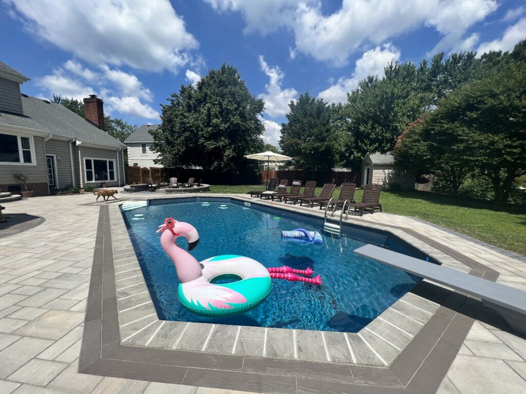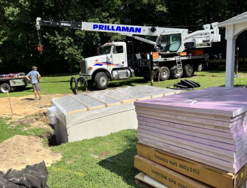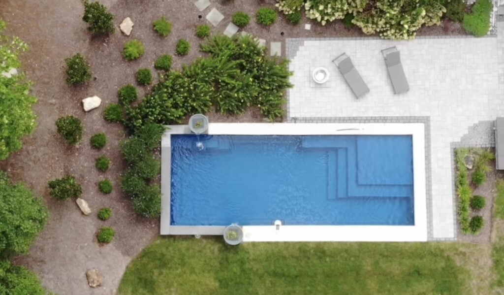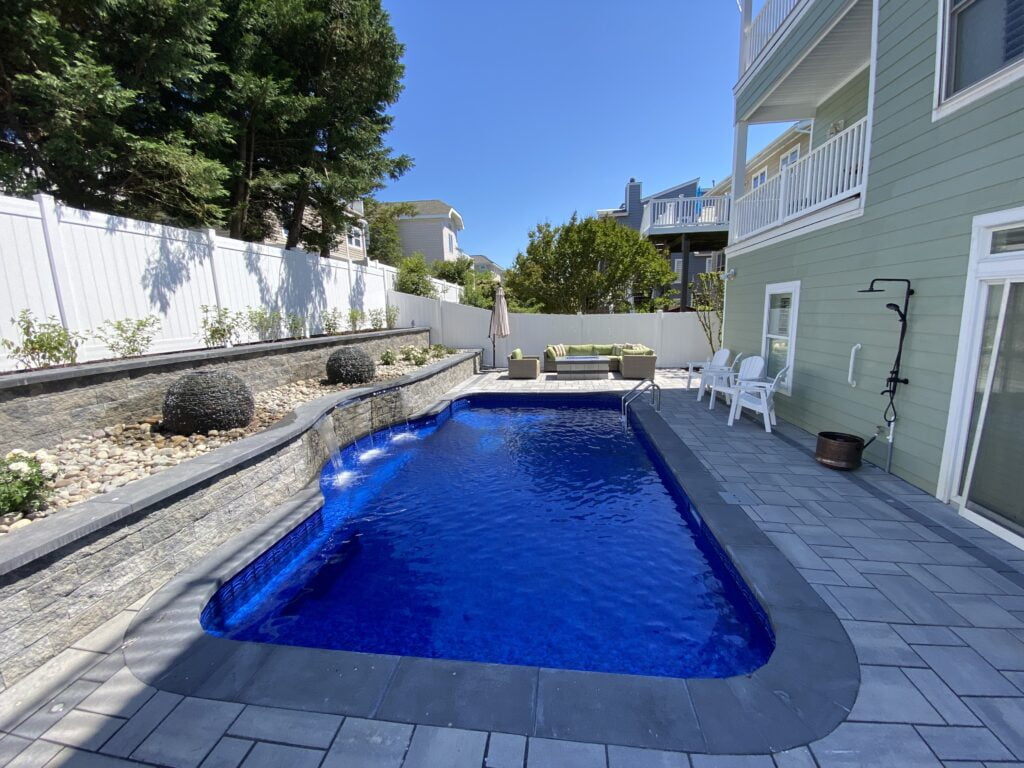 The downside of fiberglass is the sizing. They can only be 16’ wide and roughly 40’ long because they have to be shipped over the road. Also, because of how rigid the shells are you can’t squeeze them into tight spaces. They frequently have to be craned over a home to get in their final destination if there isn’t a 12-14’ access point to the backyard.