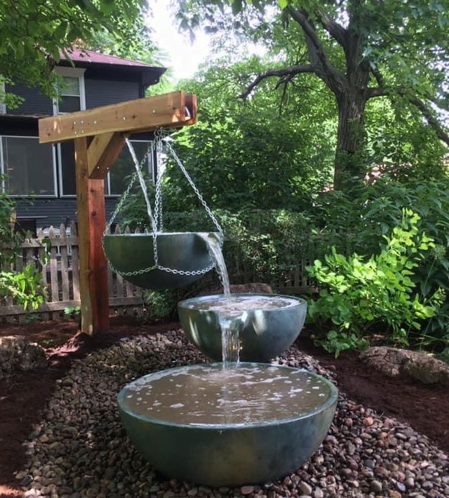 Fountains, streams, or waterfalls are much lower maintenance than a koi or goldfish pond. These types of water features are perfect to add sights, sounds, and aquatic plants to any backyard. If you travel frequently, have a busy schedule, or maybe want to be able to turn off the feature when your aren’t around – a pondless feature or fountain may be for you.