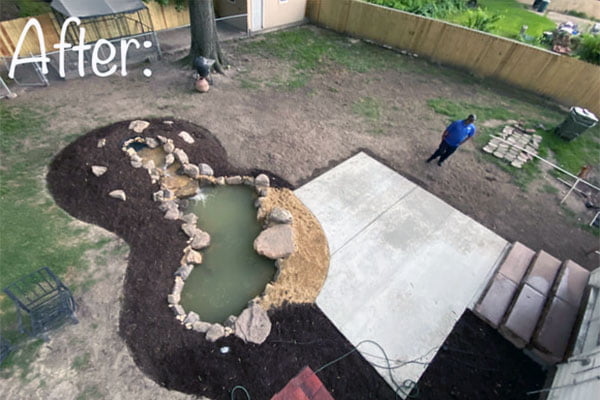 Water features generally create a lot of soil displacement. Thankfully we can usually use this soil building the waterfall or naturalizing the feature into the yard. If we can’t though, there would be a soil hauling charge to remove from the property.